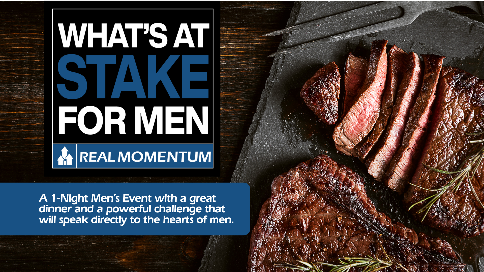 A 1-Night Men’s Event with a steak dinner and a powerful challenge.